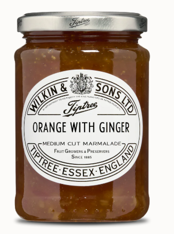 An excellent combination of medium cut orange marmalade and chunks of spicy ginger.