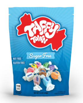 Taffy Town's delicious Sugar-Free taffy has the same great flavor as their regular taffy with half the fat! This assortment contains all of the Sugar-Free flavors: Apple, Banana, Blue Raspberry, Cinnamon, Chocolate, Huckleberry, Licorice, Orange, Strawberry & Vanilla.